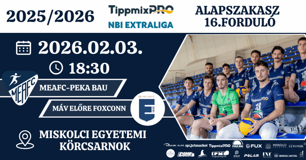 Vasárnap a rekordbajnok Fino Kaposvár vendégekén folytatja a röplabda TippmixPro férfi NBI Extraliga szereplését a MEAFC-Peka Bau gárdája. A borsodi együttes a hetedik helyről várja ezt az összecsapást míg a somogyiak eddig veretlenül vezetik a bajnokságot.